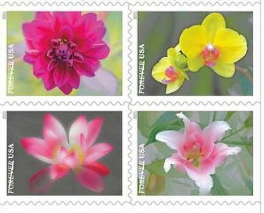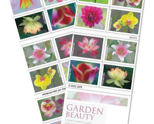 100 Garden Beauty Postage Stamps. These stamps celebrate America's love of flowers and gardens with 10 new stamp designs in a booklet of 20. The stamps include a pink flowering dogwood; a rose-pink and white tulip; an allium, or ornamental onion; a pink and white Asiatic lily; a magenta dahlia; a yellow and pink American lotus; a pink moth orchid with mottled petals; a pink and white sacred lotus; an orange and yellow tulip; and a yellow moth orchid with a pink center.