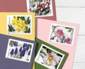 Snowy Beauty celebrates the unexpected beauty of flowers in snow. Ten stamp designs, painted in oils on panel, feature ten different plants: camellia, crocus, hellebore, winterberry, pansy, plum blossom, grape hyacinth, daffodil, ranunculus, and winter aconite. Brand New (Never Used)